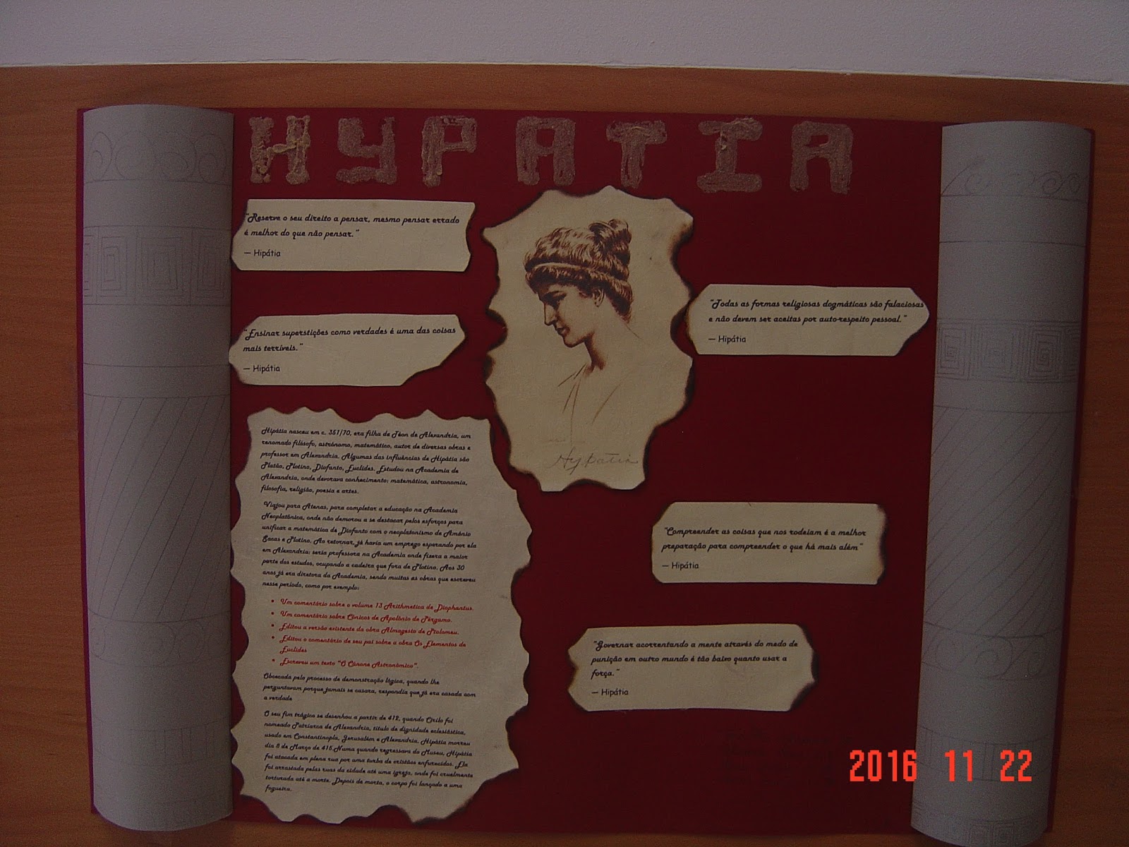 No âmbito da comemoração do DIA MUNDIAL DA FILOSOFIA – 17 de novembro – está patente ao público, na Biblioteca Escolar e no corredor adjacente, uma exposição de trabalhos realizados pelos alunos do 10.º e 11.º anos, na disciplina de Filosofia.